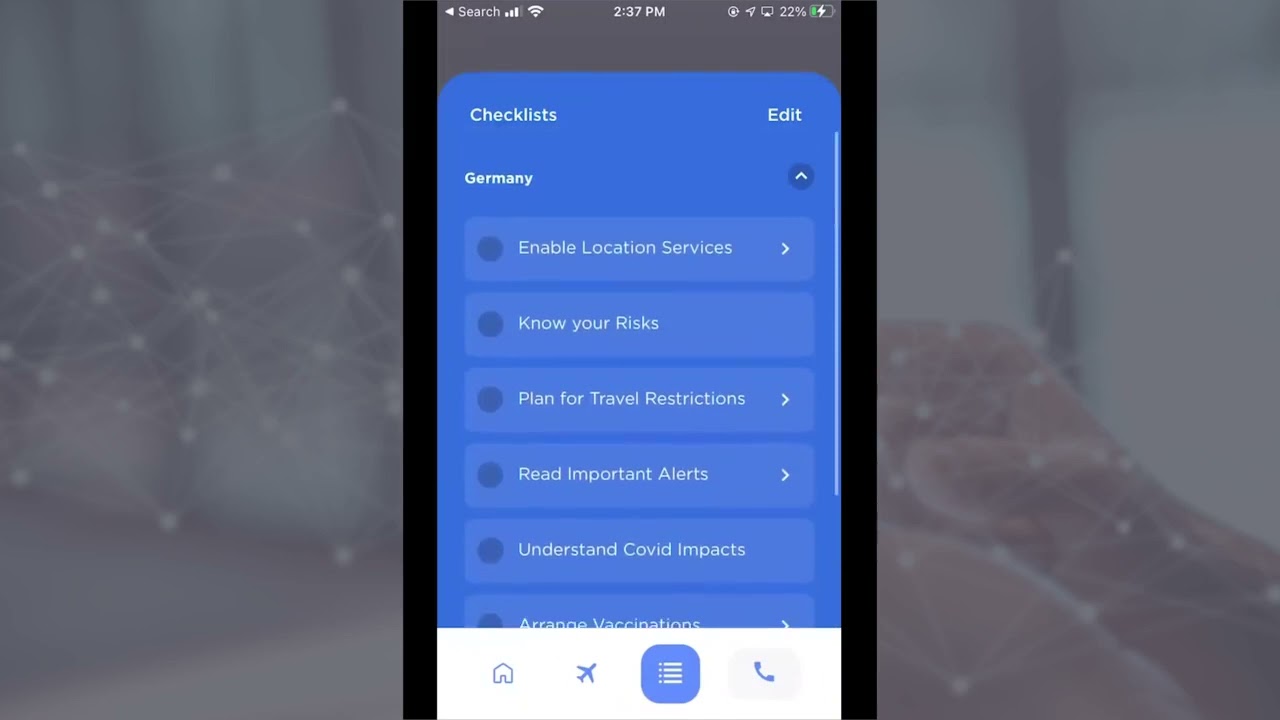 Utilisez l'application pour rechercher votre destination et comprendre les potentielles menaces de santé et de sécurité.