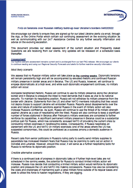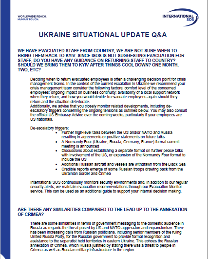 UKRAINE SITUATIONAL UPDATE